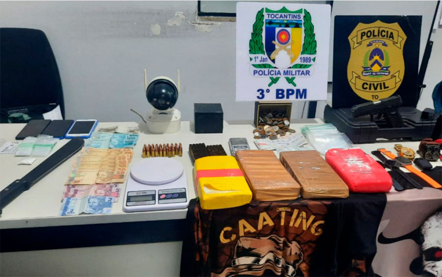Diante dos fatos, os policiais civis, com apoio da PM, foram até o local a fim de dar cumprimento a um mandado de busca e apreensão. Uma pistola calibre 9mm também foi apreendida em posse do casal, assim como drogas, insumos para embalo e dinheiro em espécie.