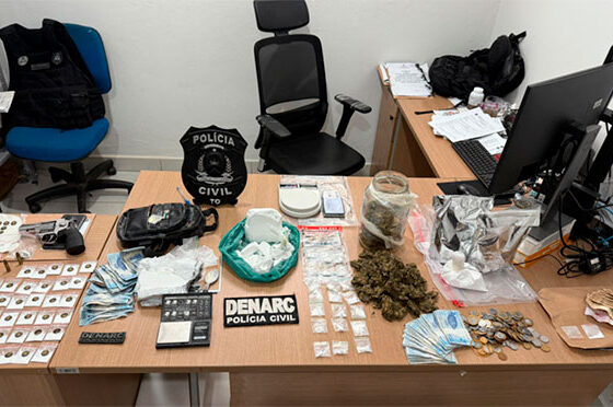 Foram cumpridos 13 mandados judiciais, com apreensão de drogas, armas, veículos e dinheiro