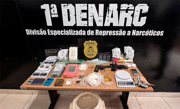 Dada à fundada suspeita, os policiais civis adentraram ao local e após a realização de buscas, localizaram e apreenderam porções de maconha, cocaína e crack. Durante a ação, dois homens tentaram fugir, mas foram alcançados. No interior do imóvel, os policiais abordaram um indivíduo de iniciais N. G. S., de 23 anos, o qual foi preso em flagrante por tráfico de drogas.