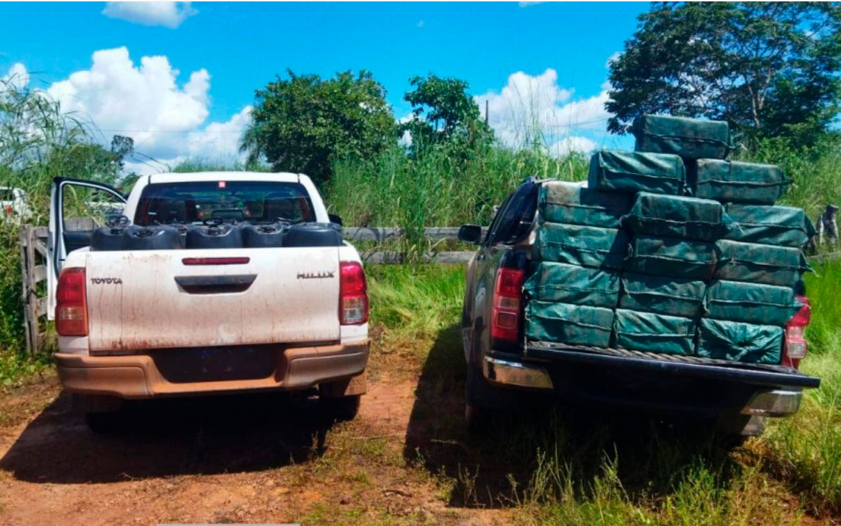 No interior da propriedade, as equipes localizaram aproximadamente 500 kg de substância análoga à cocaína, que se encontrava enterrada, além de 20 galões de combustível de aviação e duas caminhonetes, evidenciando uma estrutura logística voltada ao suporte de operações aéreas ilícitas. Na sequência, foi realizada varredura completa da área em busca de possíveis cargas adicionais, não sendo localizados outros materiais ilícitos.