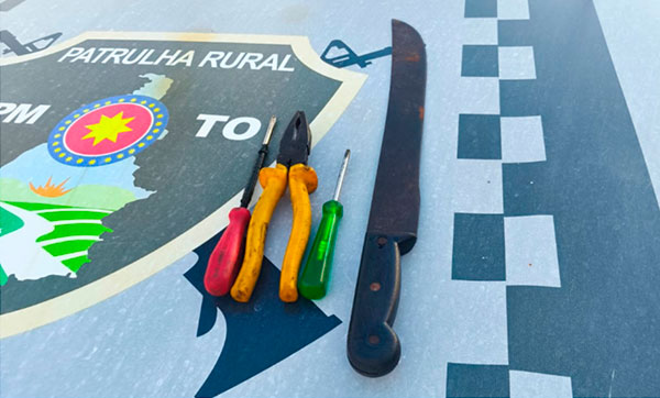 Com base nas características repassadas, os policiais iniciaram diligências e localizaram o suspeito na quadra 305 Norte. Durante a abordagem e busca pessoal, foram encontrados na mochila do indivíduo dois rolos de fios de cobre, que foram subtraídos de um poste de luz na NS-15; duas caixas de aparelhos de barbear, com etiquetas de um supermercado local e uma arma branca.