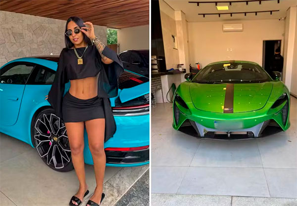 Durante a operação, a polícia apreendeu sete veículos que estavam no nome da influencer. Eles somam aproximadamente R$ 5.528.000, sendo que entre eles estão um Porsche avaliado em R$ 979 mil, uma RAM 3500 avaliada em R$ 475.000 e uma McLaren, modelo Artura, de R$ 3,1 milhões.