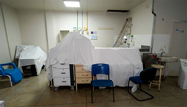 No momento da inspeção, a ala pediátrica estava com parte dos leitos desocupados e sem pacientes nos corredores.