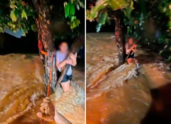 O vídeo registrado pelo sargento Luis Henrique mostra o momento da chegada dos militares e a estratégia usada para alcançar a vítima, que permanecia agarrada a uma árvore em meio à correnteza.
