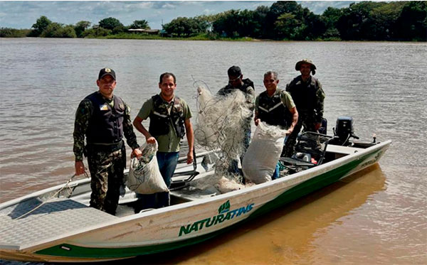 Como resultado, foram apreendidos 1,8 mil metros de redes de emalhar de diferentes malhas, seis tarrafas e um molinete. Um quelônio foi resgatado e devolvido à natureza, e 12 kg de pescado, posteriormente doados, também foram recolhidos.
