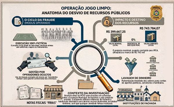 A Operação Jogo Limpo da Polícia Civil do Tocantins apura um esquema de desvio de recursos públicos por meio de convênios esportivos firmados no município de Palmas. As investigações apontam que entidades teriam recebido verbas para a execução de projetos esportivos que não foram realizados ou executados de forma irregular. A operação foi deflagrada em 2018 e, desde então, vem sendo desdobrada em diferentes inquéritos policiais, conforme cada convênio analisado, com o objetivo de responsabilizar os envolvidos e assegurar a correta aplicação dos recursos públicos.