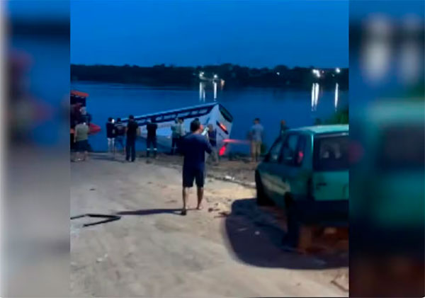 O acidente aconteceu na noite de segunda-feira, 15. A Polícia Militar (PM) informou que o ônibus caiu no leito do rio ao tentar acessar a balsa.