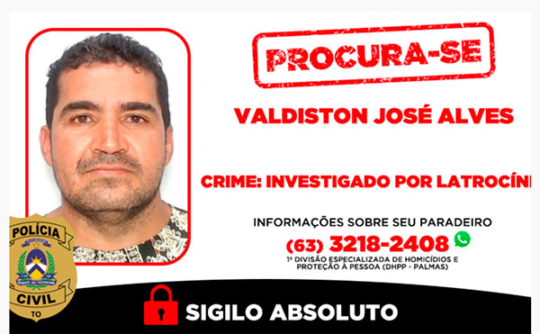 Quem tiver alguma informação que possa levar à localização de Valdiston José Alves deve entrar em contato com a 1ª Divisão de Homicídios e Proteção à Pessoa, em Palmas. O número é o (63) 3218-2408, que também é WhatsApp, ou ainda pelo 197 da Polícia Civil. O anonimato é garantido.