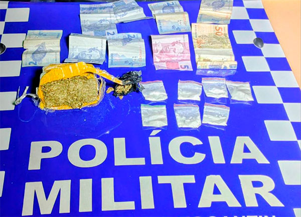Ação da Polícia Militar no Setor São João resulta na prisão em flagrante de um traficante e apreensão de cocaína, maconha, dinheiro e motocicleta