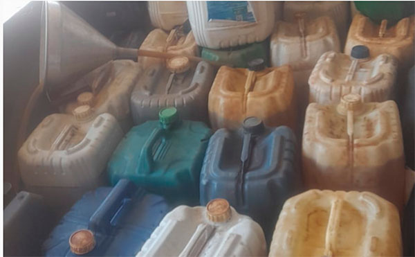 Crime contra a ordem econômica foi flagrado no Setor Santa Helena após denúncias de transeuntes; suspeito foi abordado no momento em que realizava o transbordo de galões