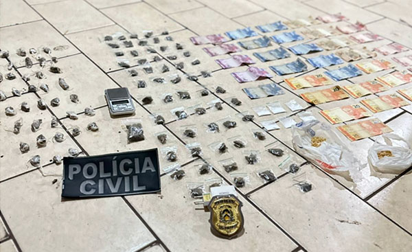 A medida é resultado de investigações relacionadas à prática dos crimes de roubo e tráfico de drogas. Durante o cumprimento da ordem judicial, os policiais civis apreenderam 53 porções de skunk, 39 porções de maconha, seis porções de cocaína e duas de crack, além de aproximadamente R$ 500 em dinheiro, balança de precisão, aparelhos celulares e outros objetos associados à atividade criminosa.