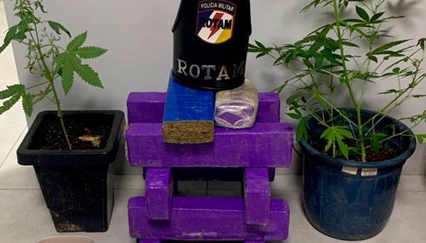 No local, os militares localizaram um saco contendo diversos tabletes de substância análoga à maconha, além de uma faca utilizada para o fracionamento da droga. Em diligências no ambiente, foram encontrados dois pés de maconha cultivados. As equipes também apreenderam uma arma de fogo, munições de calibre .22 (duas intactas e uma deflagrada), balança de precisão e dinheiro em espécie. Ao todo, foram apreendidos mais de dez quilogramas e cem gramas de maconha.