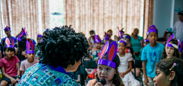 As crianças receberam ovos de Páscoa e prestigiaram a apresentação teatral “Um tempo de amor e partilha”, encenada por servidores da unidade, além de brincadeiras interativas, como jogo de perguntas e respostas sobre o teatro e uma caça aos ovos com pistas.