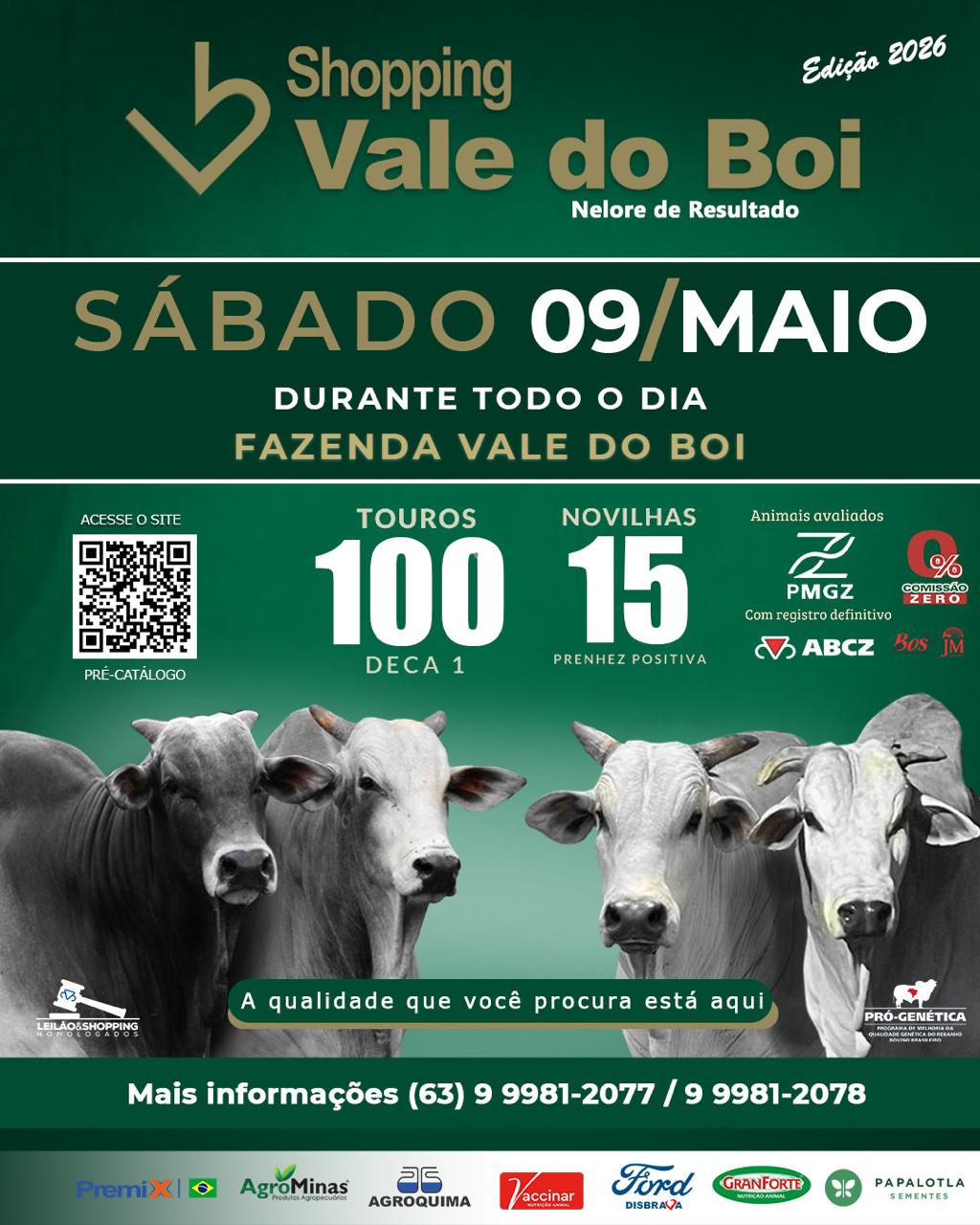 Todos os anos, o Shopping Vale do Boi disponibiliza aos compradores touros Deca 1 e matrizes com prenhez confirmada, oferecendo uma oportunidade estratégica para pecuaristas de toda a região adquirirem animais com alto padrão genético e comprovado desempenho produtivo.