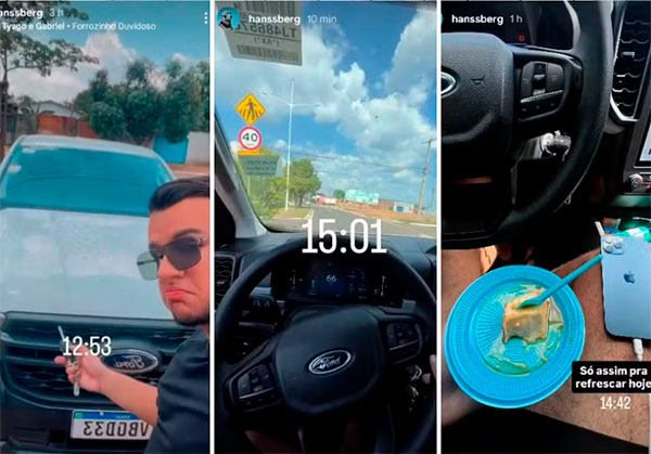 Hans Gutemberg, filho da superintendente, usou a própria rede social na tarde sábado, 8, para postar vídeos ostentando com a caminhonete de luxo. Nos stories do Instagram, ele se filma destravando o veículo e trafegando em uma avenida com limite de velocidade de 40 km/h, enquanto o velocímetro mostra que o veículo estava andando entre 60km/h e 70km/h.