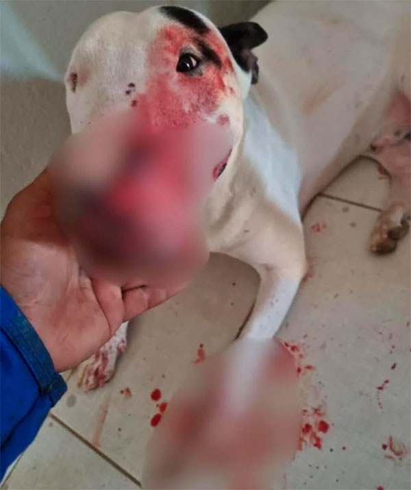 A tutora afirma que o cachorro, da raça pit bull terrier, estava na parte de dentro do terreno, que é murado. L.J.C. teria atraído o cachorro até o portão para então esfaqueá-lo. O animal foi atingido no focinho e nas patas e precisou passar por uma cirurgia. O cachorro segue internado em uma clínica veterinária.