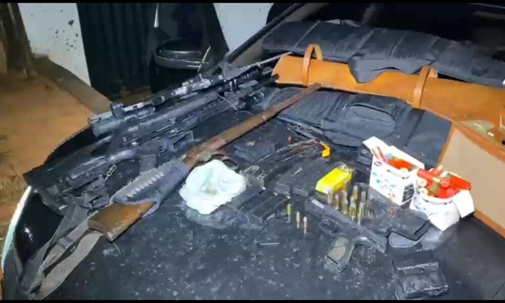 Suspeito tentou fugir da abordagem policial, mas foi interceptado após perseguição; armas e munições de diversos calibres foram apreendidas