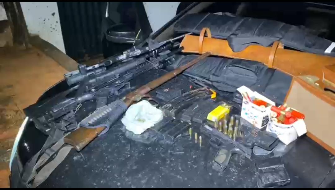 Durante a abordagem, os militares encontraram um verdadeiro arsenal dentro do carro, com armas de diversos calibres, como .22, .12, .44 e 9mm, além de uma grande quantidade de munições.
